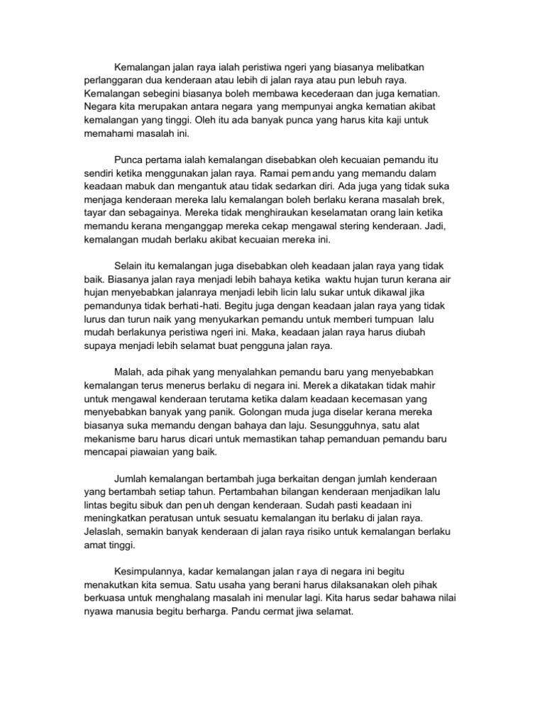 Karangan Punca Berlakunya Kemalangan Pdf